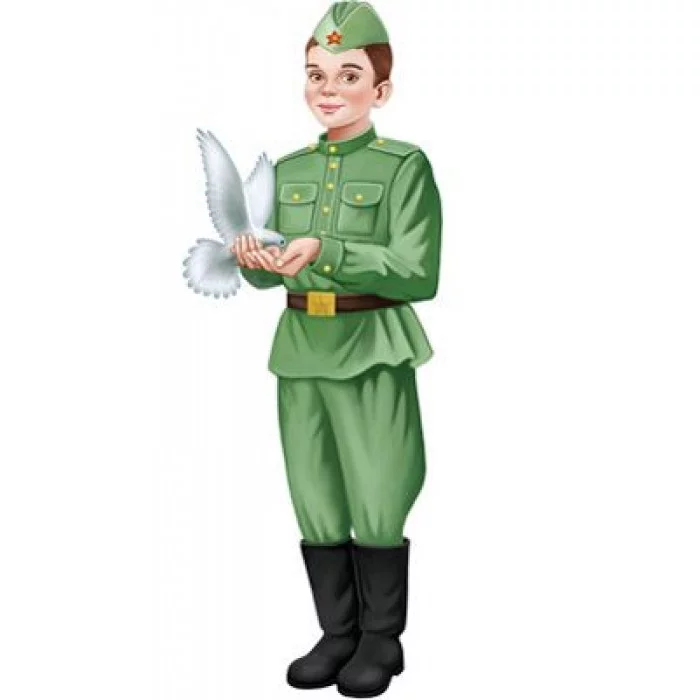 Плакат вырубной А3. Мальчик с голубем в военной форме. Двухсторонний.- группа Профессии 00-00018343 Ф-15573 4630112038323