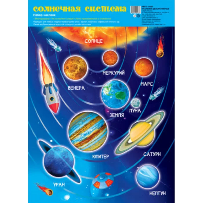 НМТ1-14481 Набор наклеек А4. Солнечная система (Уф-лак) (А4+), 4630112021837