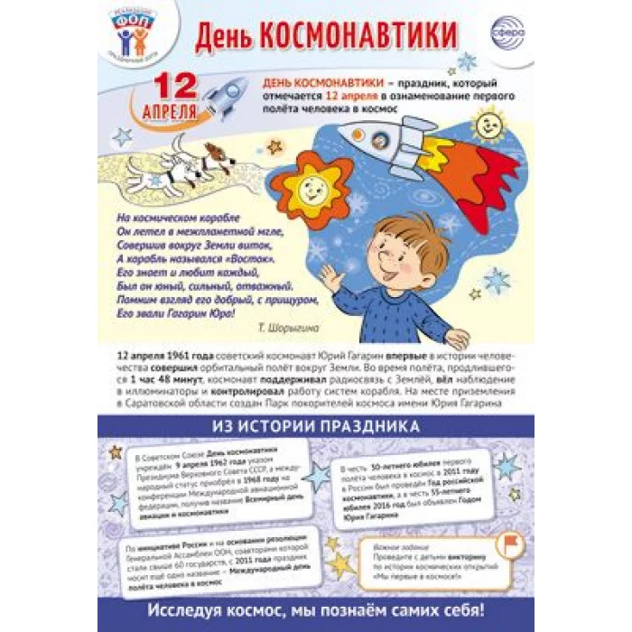 Плакат А3. Праздничные даты по ФОП: 12 апреля - День Космонавтики, 4630112044867 ПЛ-15923