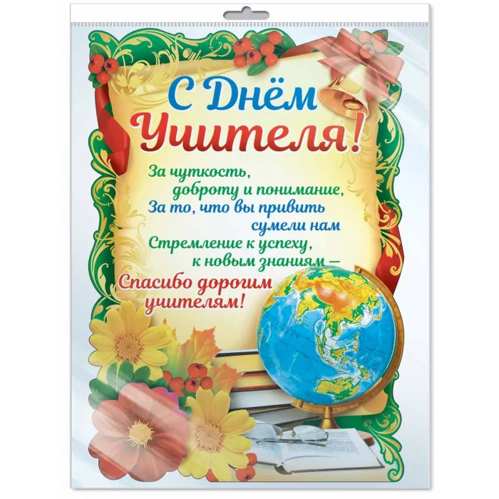 Ф-11429 Плакат вырубной А3. С Днем Учителя! (с блестками в лаке) / Сфера 4630076998596