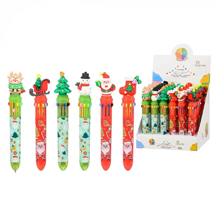 Авторучка 10-ти цветная: детская 1 шт "НОВОГОДНИЕ" цветной корпус ассорти E-8900A-1