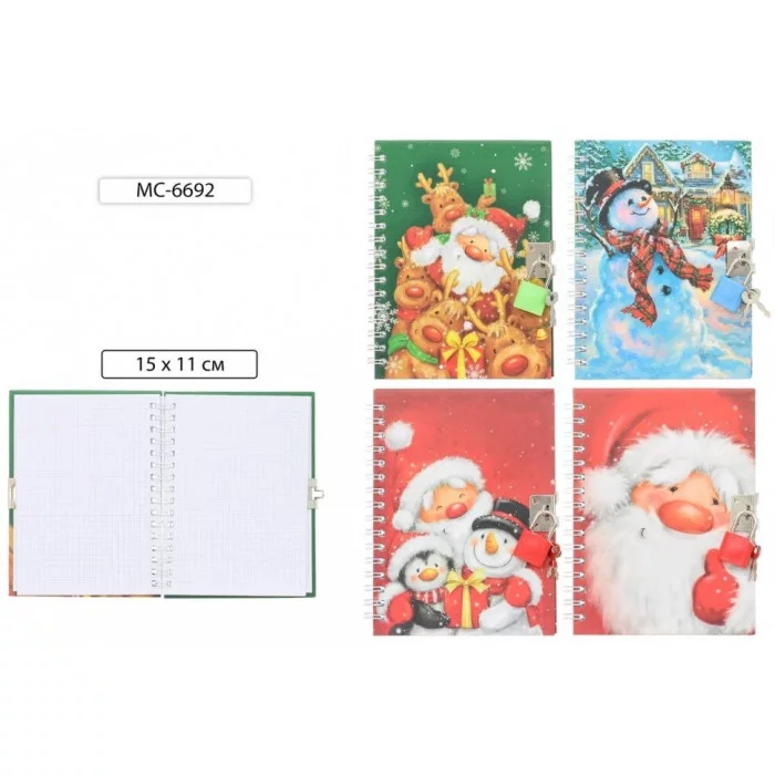 Блокнот детский+замочек: "ЗИМНЯЯ СКАЗКА"; яркая, цветная 7БЦ обложка с рисунком /ассорти/, блок-клет МС-6692