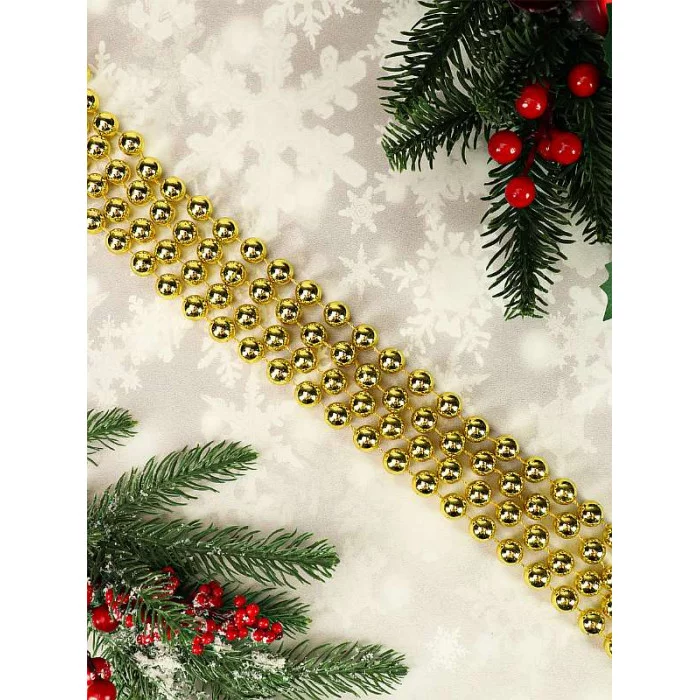 Бусы на елку — незаменимый декор, который помогает создавать невероятно уютную атмосферу Нового Года! Они эффектно выделяются на фоне хвои, придавая оформлению праздничный вид. Кроме того, бусами можно украсить предметы интерьера. Данный аксессуар является завершающим штрихом композиции, придает ей особого шарма и романтизма. Цвет: золотой. Длина: 1,8 м. Диаметр: 1,4 см.