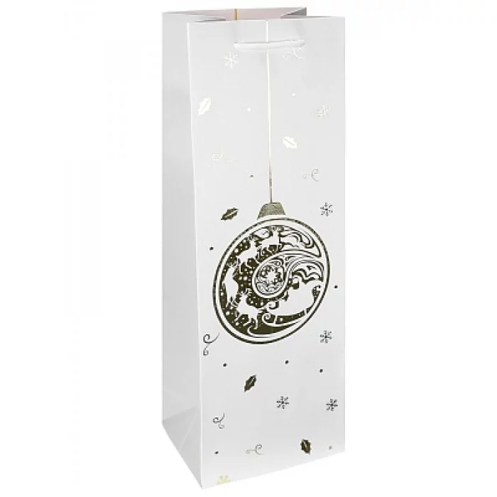 Подарочный пакет под бутылку идеально подойдет для эксклюзивной упаковки любимого напитка! Пакет с новогодним дизайном, матовой ламинацией и тиснением фольгой хорошо держит форму. Вмещает бутылки из-под вина или шампанского, а также аналогичные по размеру бутылки алкоголя. Размер:12х35х9 см. Плотность: 210 гр.