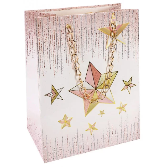 Dream cards Пакет подарочный с глянцевой ламинацией, глиттером и металической цепью 33 х 26,7 х 13,7 см (L) Красивая звезда, 210 г ПКП-3754
