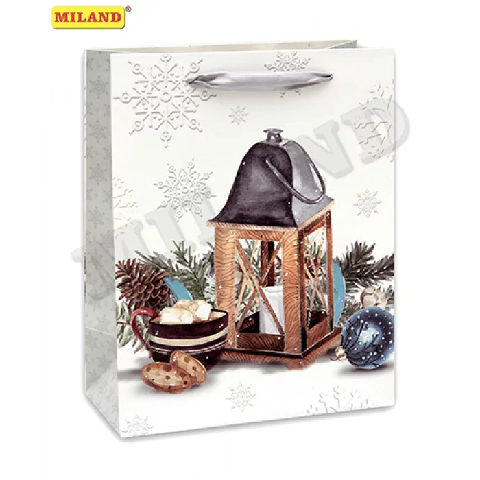 Dream cards Пакет подарочный с глянц.лам.и глиттером 32х26х12 см (L)Зимний фонарик, 210г ПП-0234