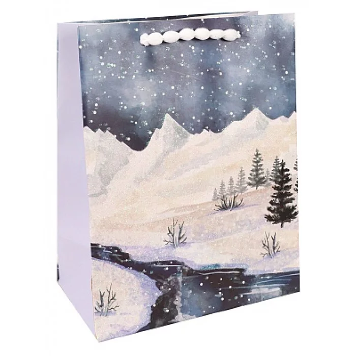 Dream cards Пакет подарочный с мат. лам. и мягкими ручками и глиттером 33 x 26, 7 x 13, 7 см (L) Сказочная зима, 210 г ПКП-3748