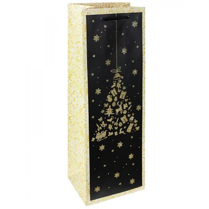 Dream cards Пакет подарочный с мат.лам. и глитт. 12х35х9см (Bottle) Современная ёлка 210 г ПКП-6753