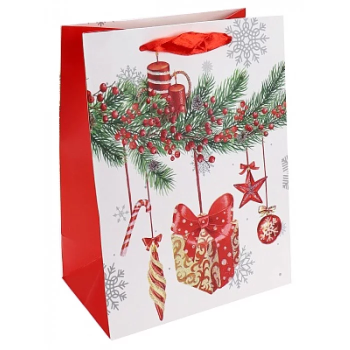 Dream cards Пакет подарочный с мат.лам. и глиттером 18x23x10см(M) Рождественская свеча, 210г ПКП-3782