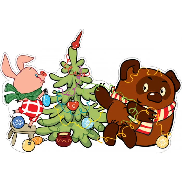 Ф2-12183 Плакат вырубной А3. Пятачок и Винни-Пух украшают елку из мультфильма (с блестками в лаке) / Союзмультфильм (серия) Сфера