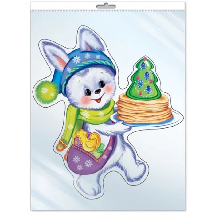 ФМ-10932 Плакат вырубной А4. Зайчик новогодний (с блестками в лаке) / (серия) Сфера