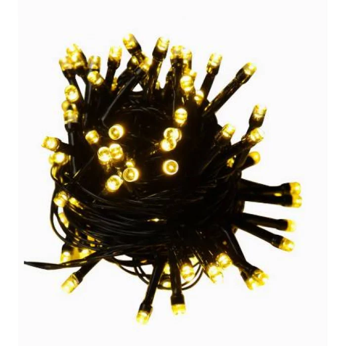 Размер: 10 м. Количество ламп: 100 шт. Тип свечения: теплый белый свет.