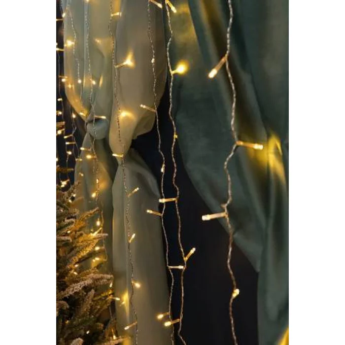 Гирлянда Занавес 1 8х1, 8 м прозрачная нить 144 лампы тёплый белый свет 8 режимов ГЗ-0008