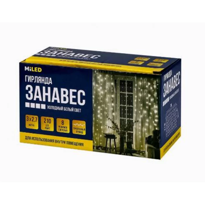 Гирлянда Занавес. 3*2 7 м 210 ламп холодный белый свет 8 режимов MILEND ГЗ-0044