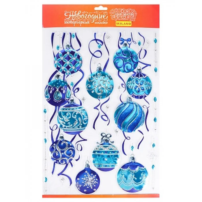Интерьерная наклейка "Большой набор ёлочных игрушек" 41x29см НУ-9261