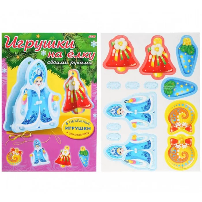 ХАТБЕР. (НГ). ИГРА-Конструктор Объемная А4ф "Сделай Сам"-Игрушки на елку- Набор №1 в пакете
