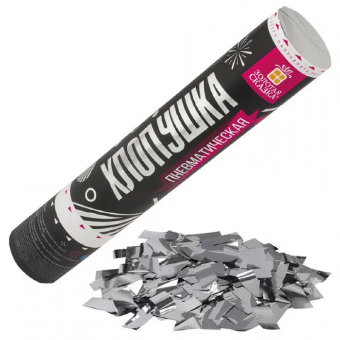 Хлопушка пневматическая ЗОЛОТАЯ СКАЗКА 30 см, фольга, прямоугольники, серебристый, 591477
