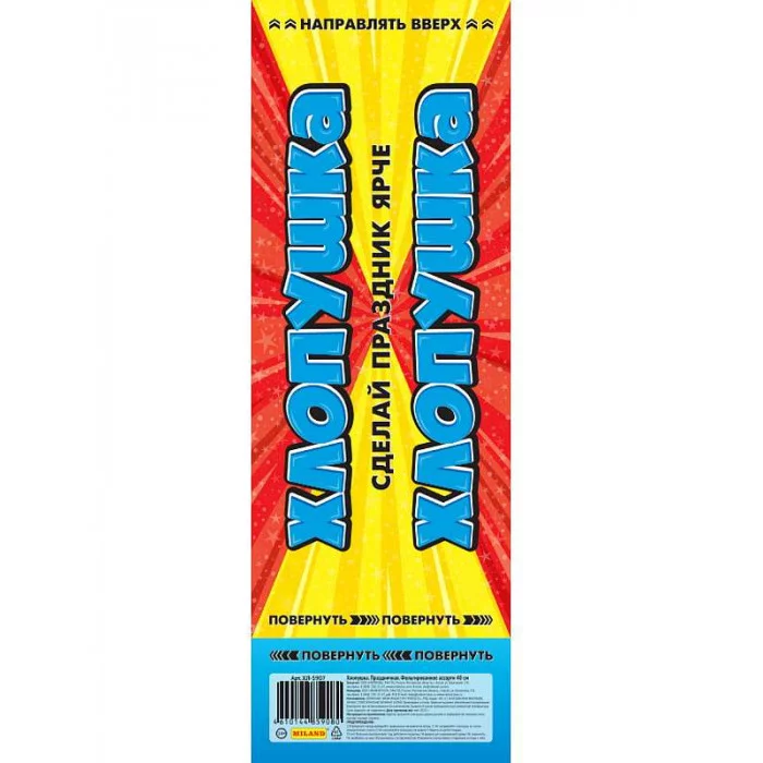 Хлопушка поможет создать отличное настроение и атмосферу настоящего веселья на любом празднике! Выстрел фольгированными конфетти очень эффектно смотрится на фото и видео! Хлопушка не является пиротехникой, она полностью безопасна при соблюдении инструкции на упаковке. Подходит для использования как в помещении, так и на улице. Размер: 40 см.