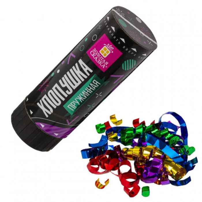 Хлопушка пружинная ЗОЛОТАЯ СКАЗКА 11 см, фольга, серпантин/конфетти, ассорти, 591467