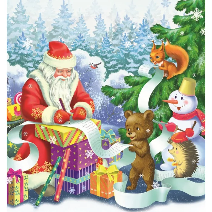 Холст с красками 20x20 см по номерам в коробке (14 цв.) Распределение подарков (Арт. ХК-2289) ХК-2289