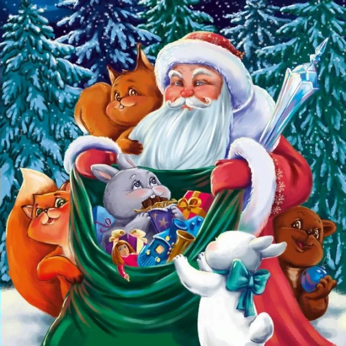Холст с красками 20x20 см по номерам в коробке (14 цв.) Зверята принимают дары (Арт. ХК-2290) ХК-2290