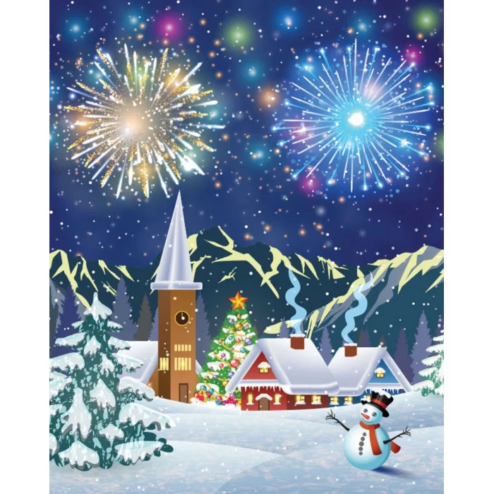 Холст с красками 22х30 см по номерам в коробке (14 цв.) САЛЮТЫ В ЧЕСТЬ НОВОГО ГОДА (Арт. HS634) HS634