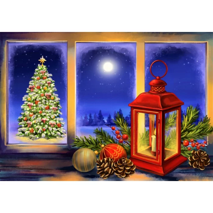Холст с красками 30х40 см по номерам (20 цв.) Зимняя лунная ночь (Арт. ХК-2244) ХК-2244