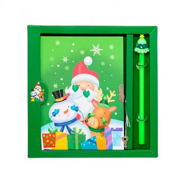 Книжка записная А5- 48 листов в клетку обложка твердая с ламинацией "Новогодние" с замочком, ручкой, ассорти BASIR МС-7225