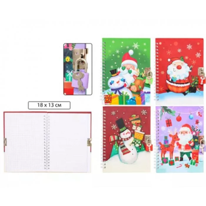 Книжка записная А5- 48л клетка/гребень тв ламин "Новогодние" +замочек асс BASIR МС-7227 125647