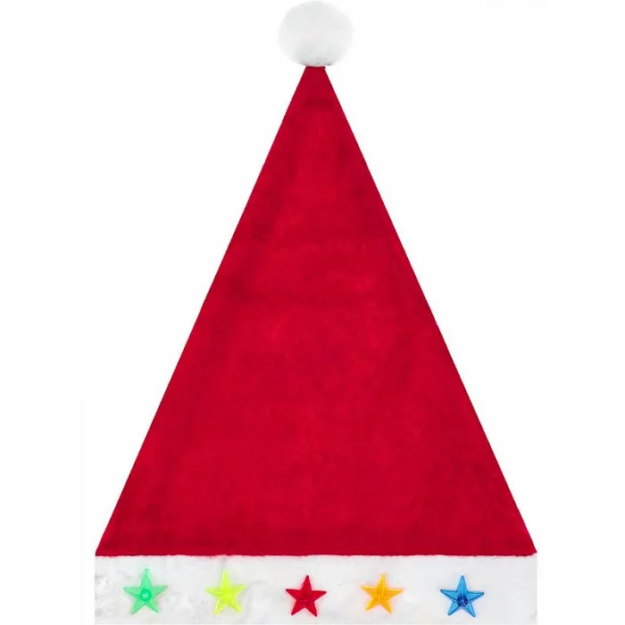 Колпак новогодний красный елочки и звезды с подсветкой 28*38 см НУ-1933