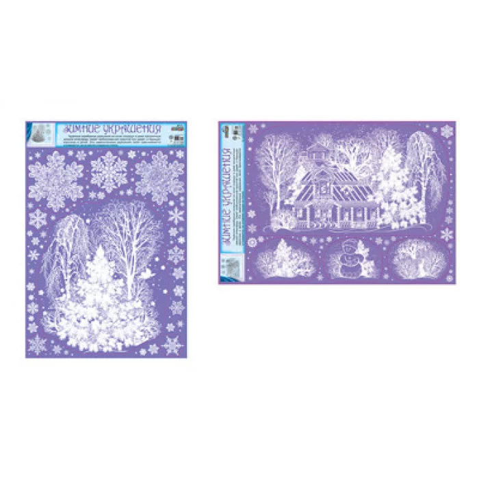 Комплект декоративных наклеек формата А3. Зимний пейзаж Сфера КБН-13494