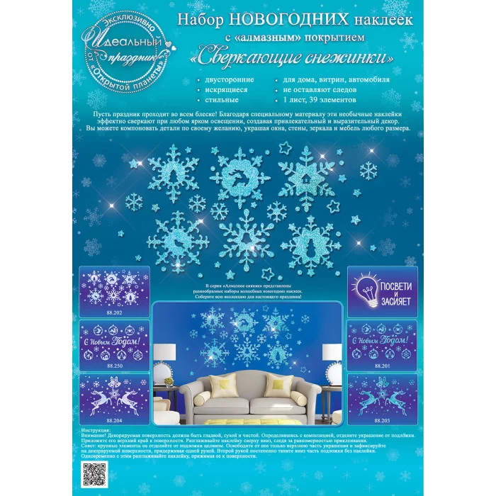 Комплект оформительских наклеек "Открытая планета" "Сверкающие снежинки" 88203
