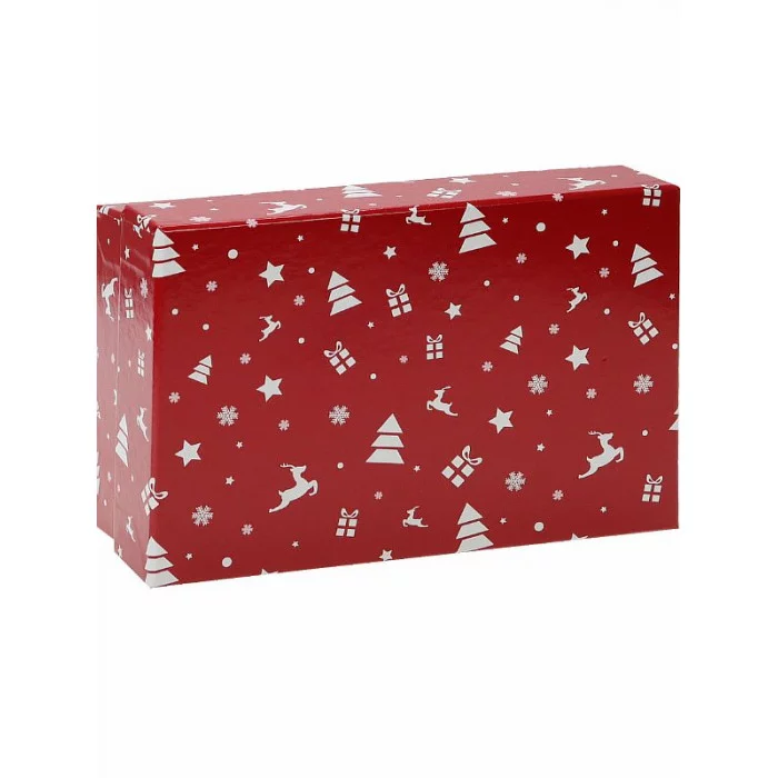 Коробка прямоугольная одинарная Елки на красном 15х10х5 см ПП-9828