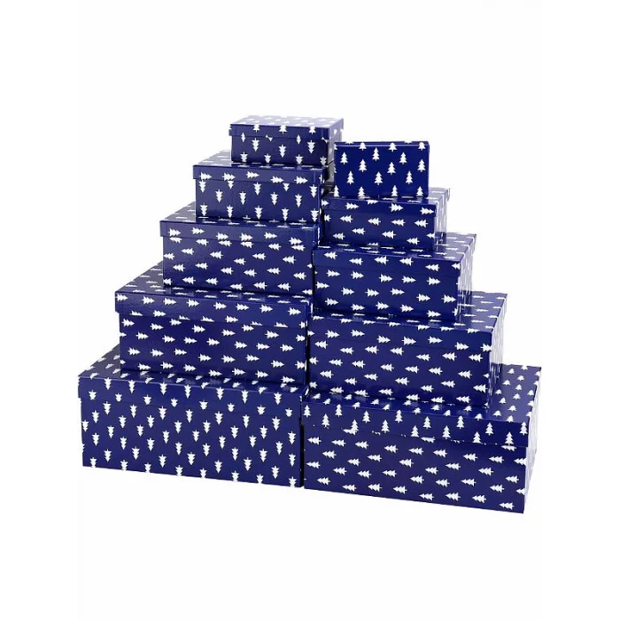 Коробка прямоугольная одинарная Новогодние ели на синем 17х11х6 см ПП-9822