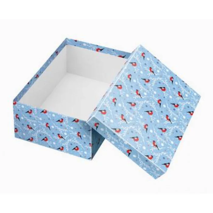 Коробка прямоугольная одинарная Снегири 36х24х8 КК-8335
