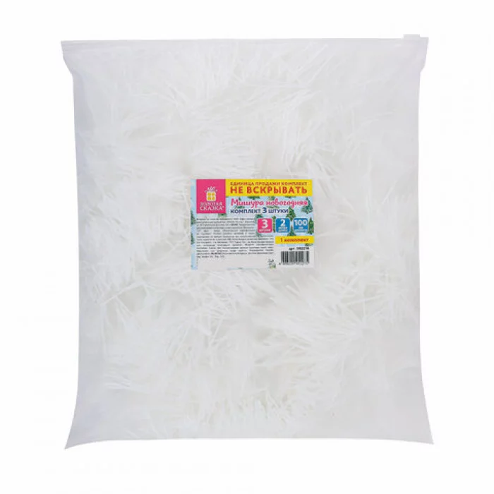 Мишура "ЗОЛОТАЯ СКАЗКА" - это чудесный декор, который создаст праздничное настроение дома или в офисе. Мишура станет ярким акцентом на вашей новогодней елке или украсит стены, окна, двери, создавая атмосферу сказочного волшебства. Длина мишуры в расправленном виде составляет 2 м, диаметр – 10 см. Материал мишуры – полиэтилентерефталат. В комплекте – 3 штуки мишуры белого цвета. Упакованы в пакет с зиплоком. Тип товара: мишура. Длина: 2 м. Ширина: 10 см. Спецэффект: нет. Количество в комплекте: 3 шт. Цвет: белый. Материал: полиэтилентерефталат Бренд - ЗОЛОТАЯ СКАЗКА. Производитель - Китай. . Штрихкод - 4606224451275