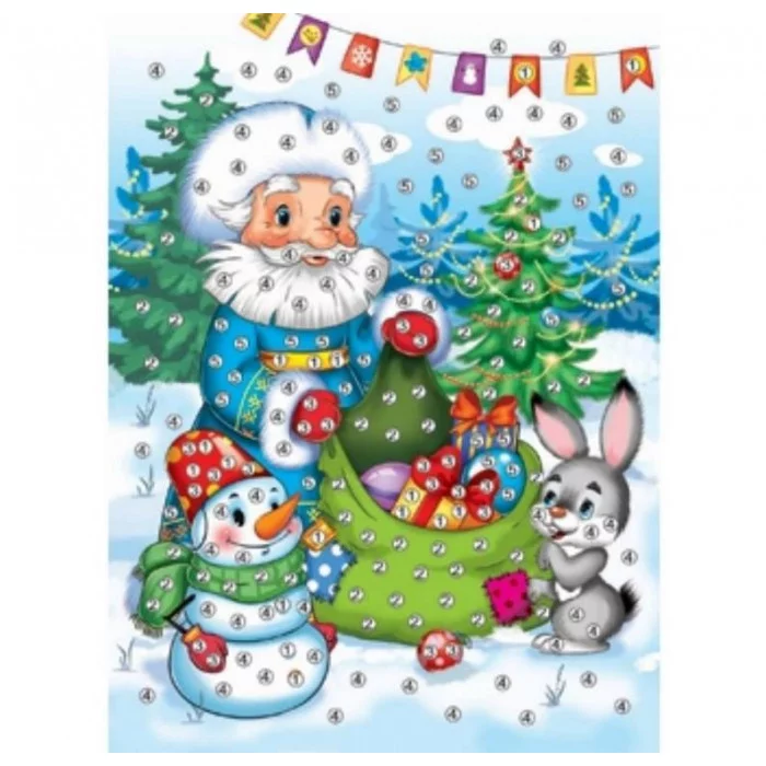 МОЗАИКА ИЗ СТРАЗ. ДЕД МОРОЗ РАЗДАЕТ ПОДАРКИ (Арт. М-7314)