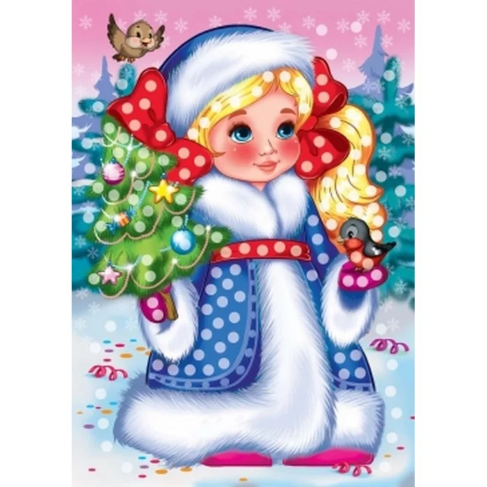 МОЗАИКА ИЗ СТРАЗ. Формат А5 (с перьями). Снежная девочка (Арт. М-6812)