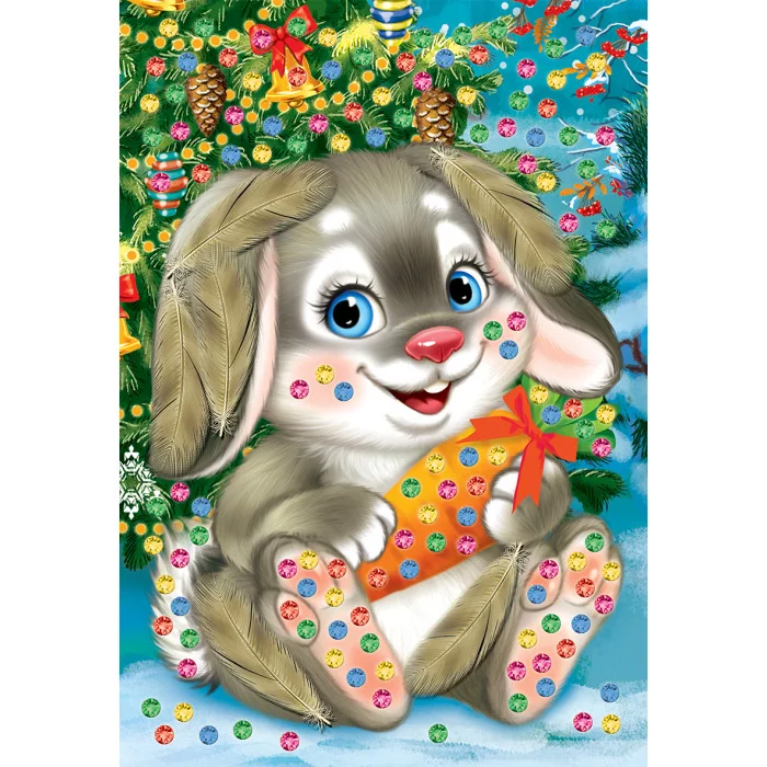 МОЗАИКА ИЗ СТРАЗ. Формат А5 (с перьями). Зайчик у ёлки (Арт. М-1150) М-1150