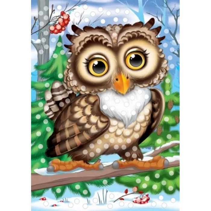 МОЗАИКА ИЗ СТРАЗ. Формат А5 (с перьями). Зимнаяя сова (Арт. М-6813)