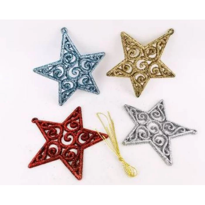 Набор для украшения елок в форме пентаграммы,звезды из 4-ех предметов,разноцветный, 10 см GHH041427