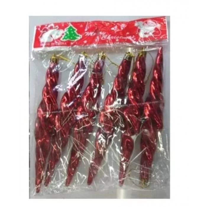 Набор елочных игрушек из 6-ти сосулек 17см. цв.красный Арт.6299 8\795