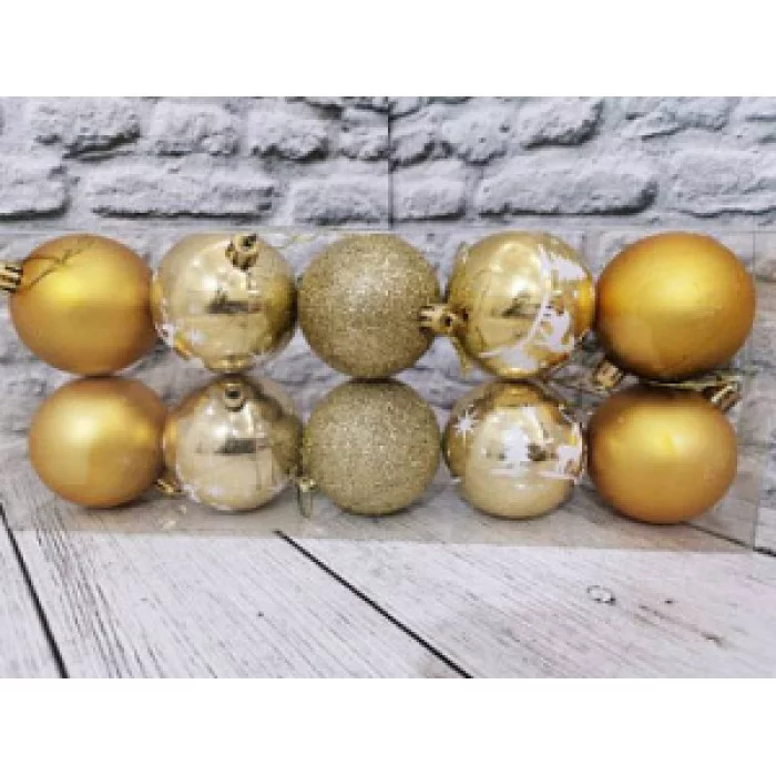 Набор елочных шаров 10 шт, 6 см, цвет: золото JP80253-3 8\1543