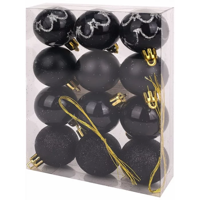 Набор ёлочных шаров 12 шт Чудеса, 4 см, черный с узором НУ-5629