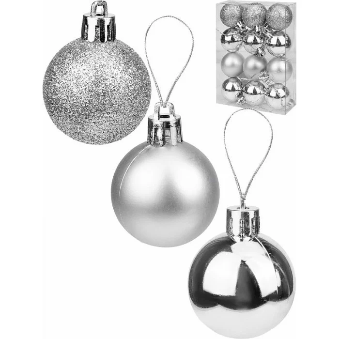 Набор ёлочных шаров 12 шт Чудеса, 4 см, серебряный с узором НУ-5623