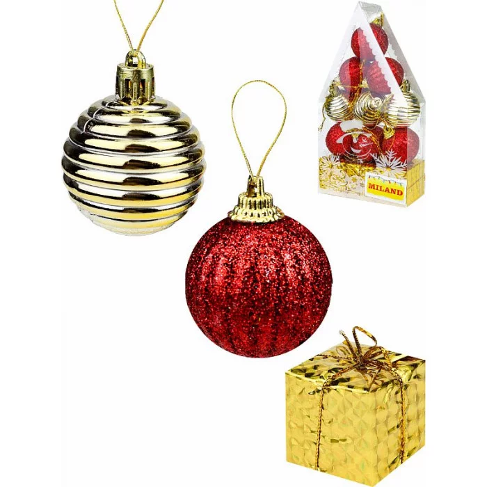 Набор ёлочных шаров 12 шт Красивый домик,4 см, золотой,красный НУ-0463