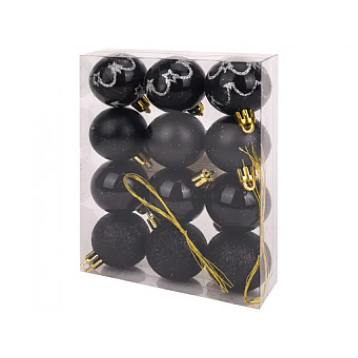 Набор елочных шаров 12шт. Чудеса, 4см, черный с узором НУ-5629