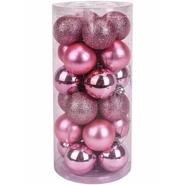 Набор ёлочных шаров 24 шт Новогоднее настроение, 4 см, розовый НУ-5620