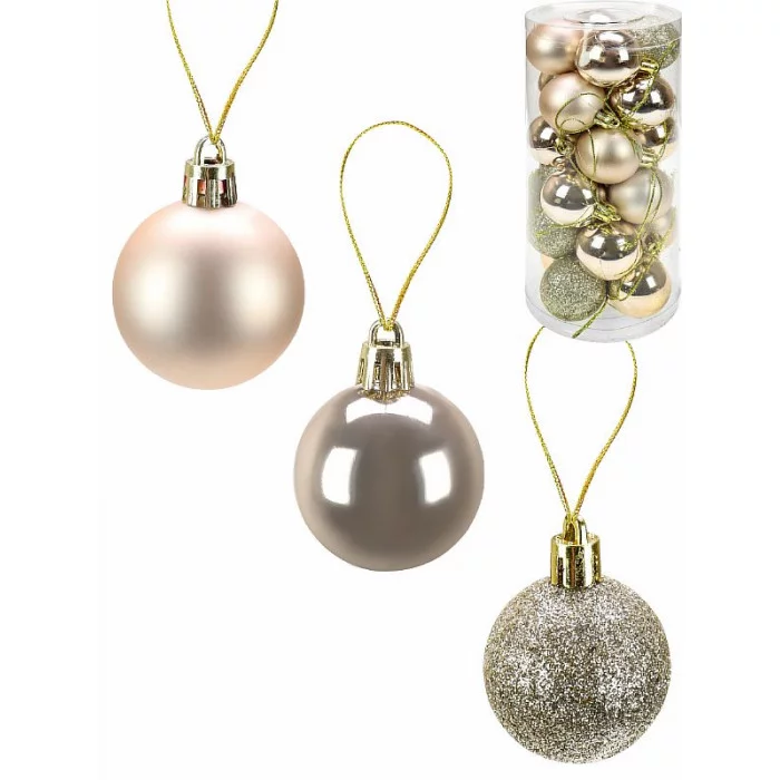 Набор ёлочных шаров 24 шт Новогоднее настроение, 4 см, золотой (мат, глянец, глиттер) НУ-3435