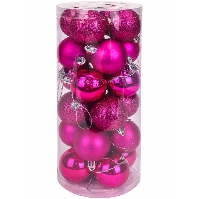Набор ёлочных шаров 24 шт Новогоднее настроение, 5 см, насыщенный розовый НУ-5635